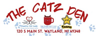 Find your new favorite place and meet some adorable cats at The Catz Den, a cozy cat cafe featuring therapy cats from The Country Cat Lady. Enjoy a delicious cup of coffee during The Purr-fect Cup Coffee and Kitty Hours for cat lovers. Teens can have plenty of fun and get freebies at the VIP Teen Program during the school year (Sept-May). We are located 15 mins south of Grand Rapids, Michigan